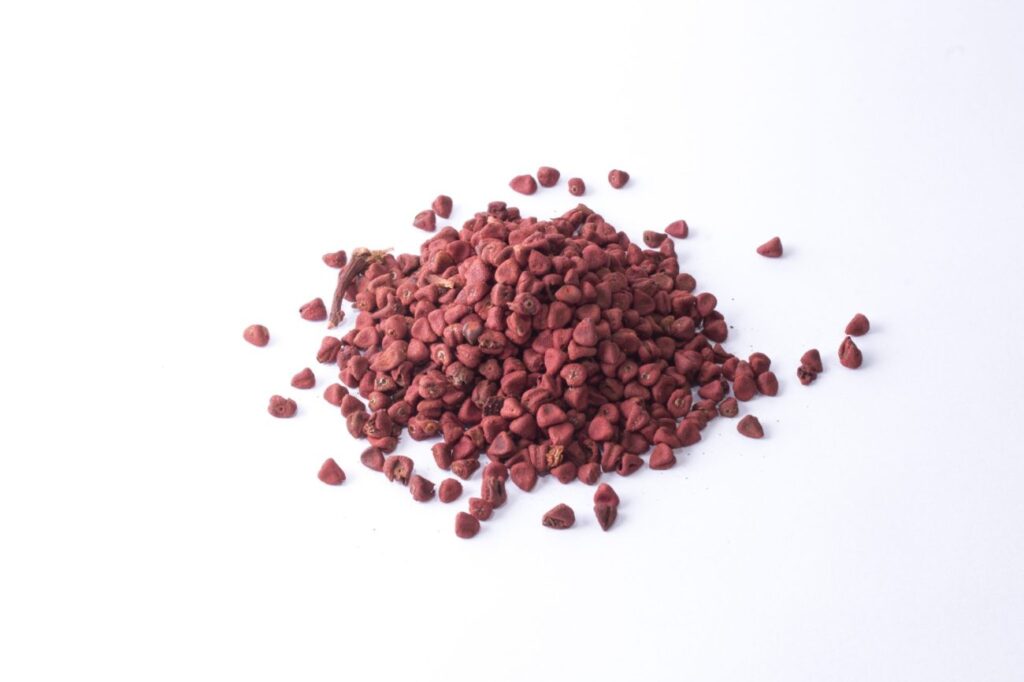 As sementes são trituradas para obter um pó vermelho-alaranjado, amplamente utilizado como aditivo alimentar.